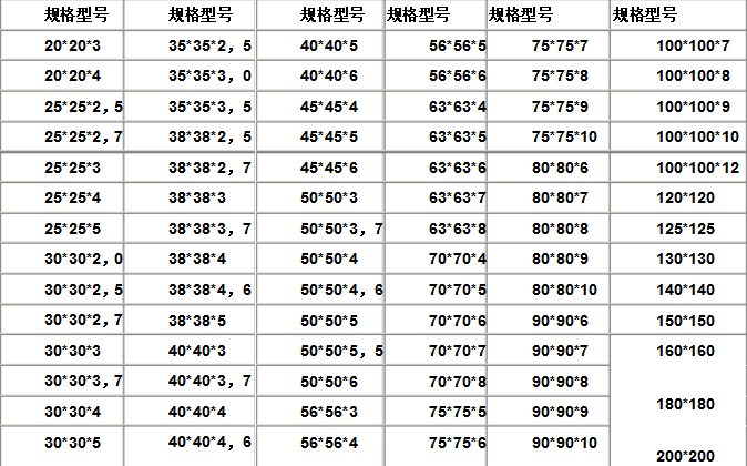 角鋼規(guī)格表大全